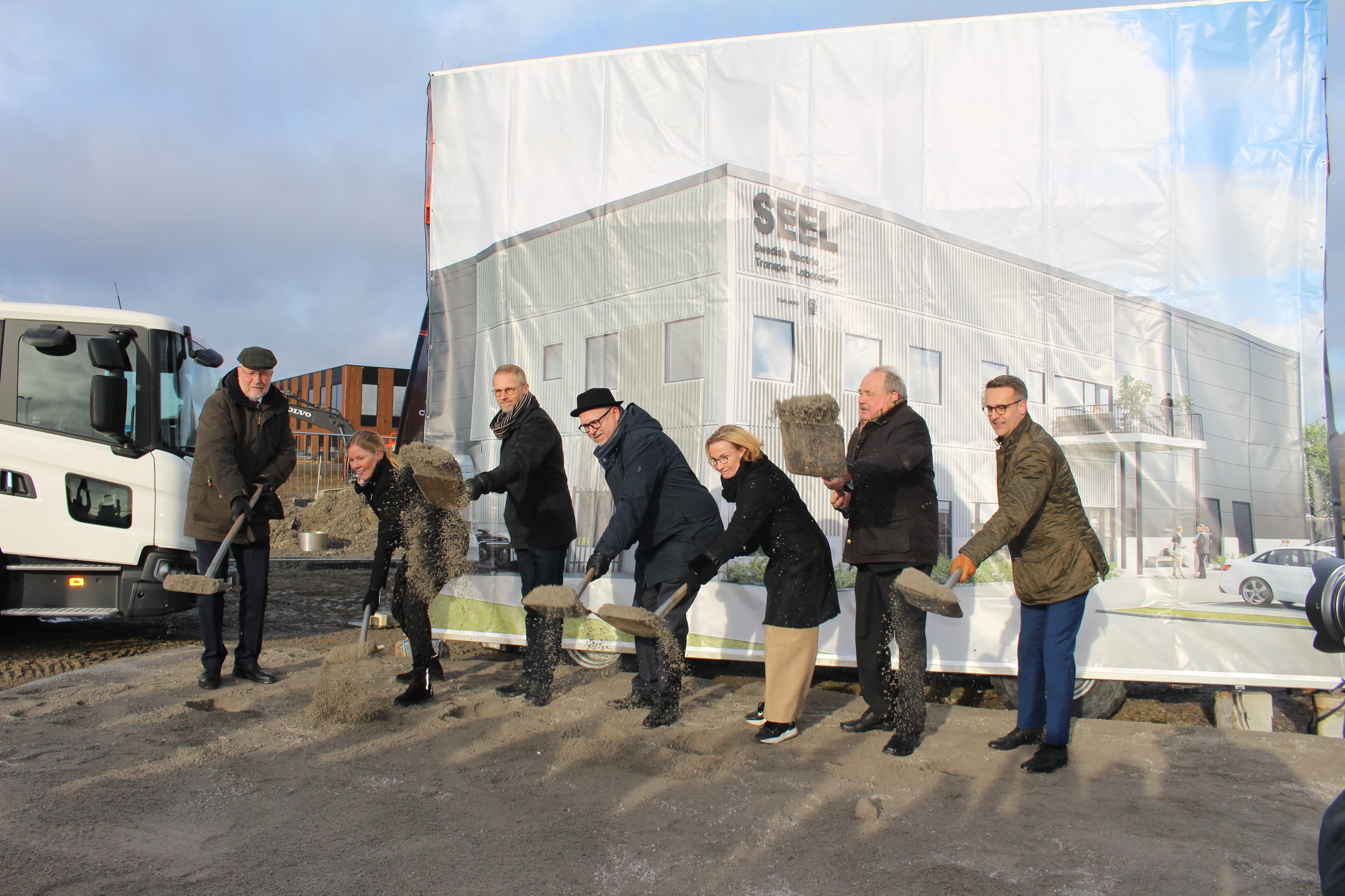 I Nykvarn togs i dag det första spadtaget till en av SEELs anläggningar för framtidens elektromobilitet, ett testcenter som tas i drift 2023. Här ska forskare och företag testa och utveckla batteriteknik och drivlinor för tyngre fordon, flyg och båtar.