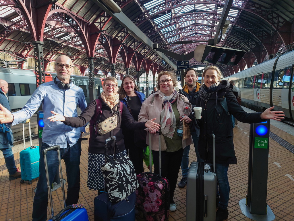 Då fick Jussi Schween sällskap på tåget av ytterligare fem kollegor. Den här gången erbjöd företaget tågresa som ett alternativ till flyg för dem som ville.