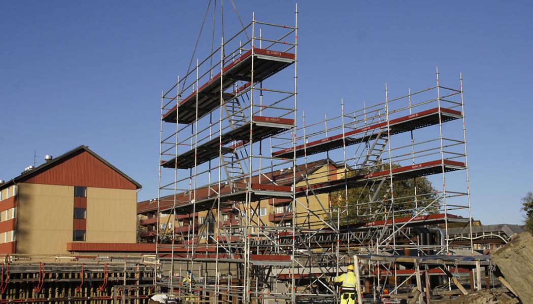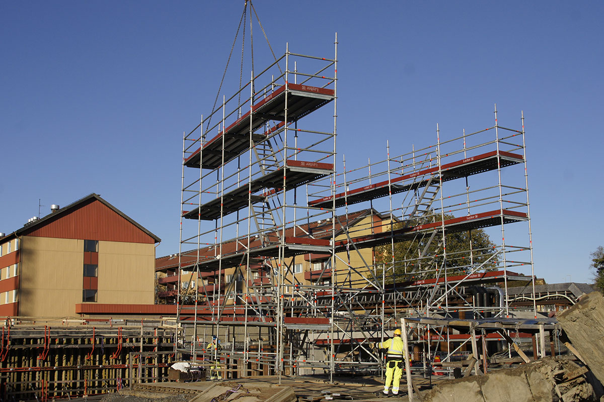 – Det är marginell justering av de fasta ställningarna och vi synar alltid ställningen efter lyft. Ställningarna lyfts med tornkran enkelt, väldigt effektivt i jämfört med att bygga och riva varje gång. Både vi och våra underentreprenörer är riktigt nöjda med lösningen. Arbetsställningarna har allt i ett, de är stabila, säkra, har integrerade trappor och kan enkelt lyftas i sin helhet. Vi behöver heller inte förankra ställningarna i vägg eftersom de har inbyggda stöd som gör ställningen mycket stabil. När ställningarna inte används som armeringsställning har ibland använt dem som trapptorn för access, ett väldigt bra komplement, berättar Albin Karlsson, arbetsledare på Skanska.
