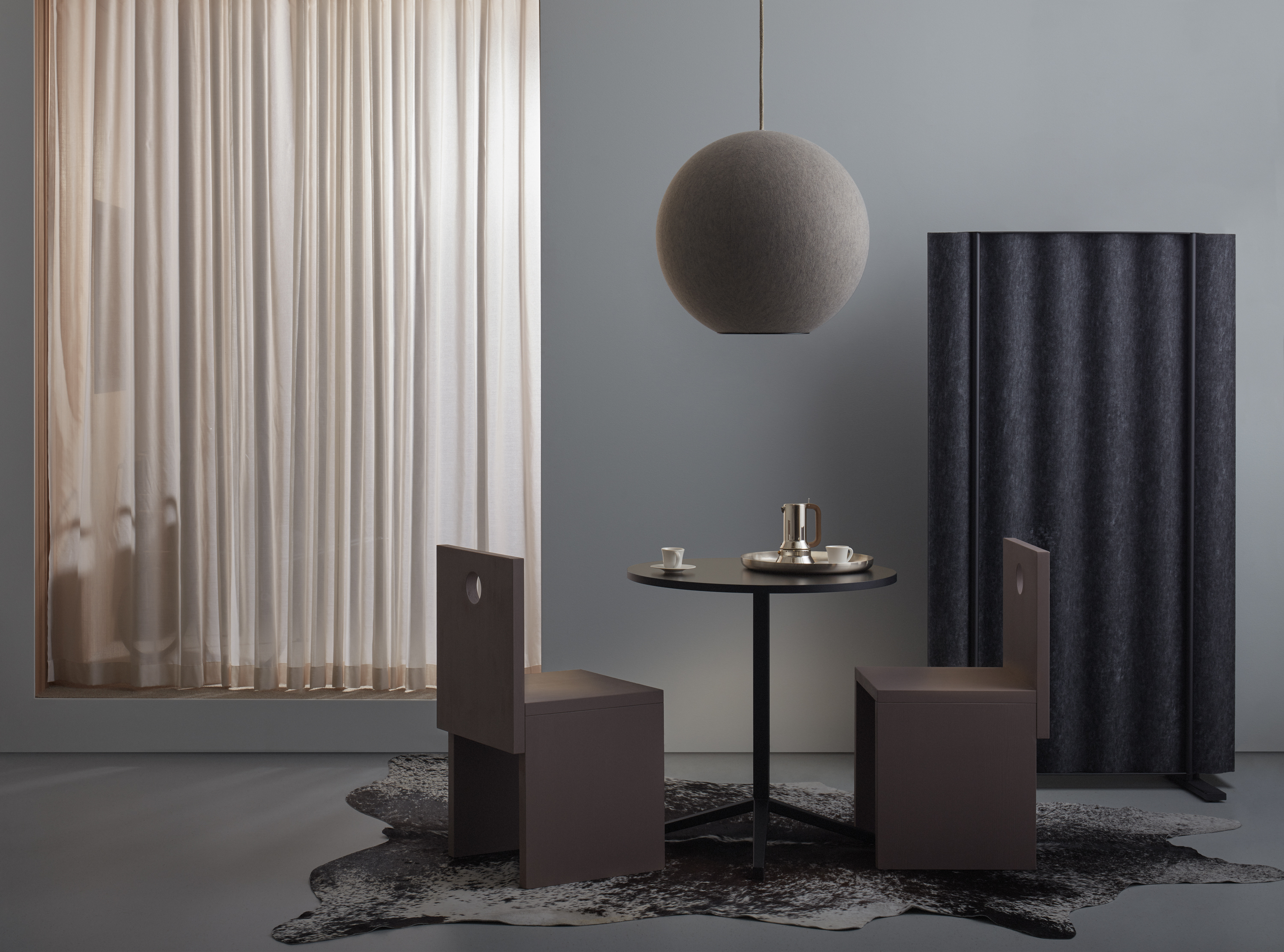 – Jag har tänkt mycket på rymden, månen, och det vakuum som råder där, vilket innebär att det finns ljus, men att det är alldeles tyst. Designmässigt har jag kombinerat två klassiska lampformer: klotet och konen, som döljer sig inuti klotet. På så sätt har det varit möjligt att skapa en klotformad lampa med ett riktat ljus, berättar formgivaren Thomas Bernstrand.