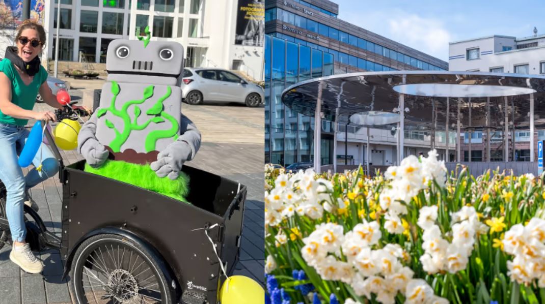 På Cykelns dag 3 juni blir det cykelfest i Helsingborg. Klockan 12 invigs det nya cykelgaraget på Kungstorget och en timme senare är det dags för en cykelparad genom city, för alla som vill vara med. Superhjältarna Larve och Vinda är med och hejar! Foto: Helsingborg