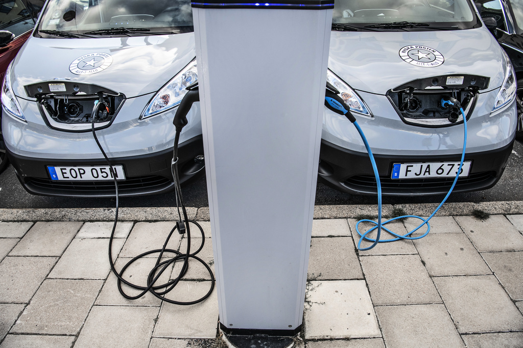 Tomas Oneborg/SvD/TT: Elbilar laddas vid en laddstolpe. Arkivbild.