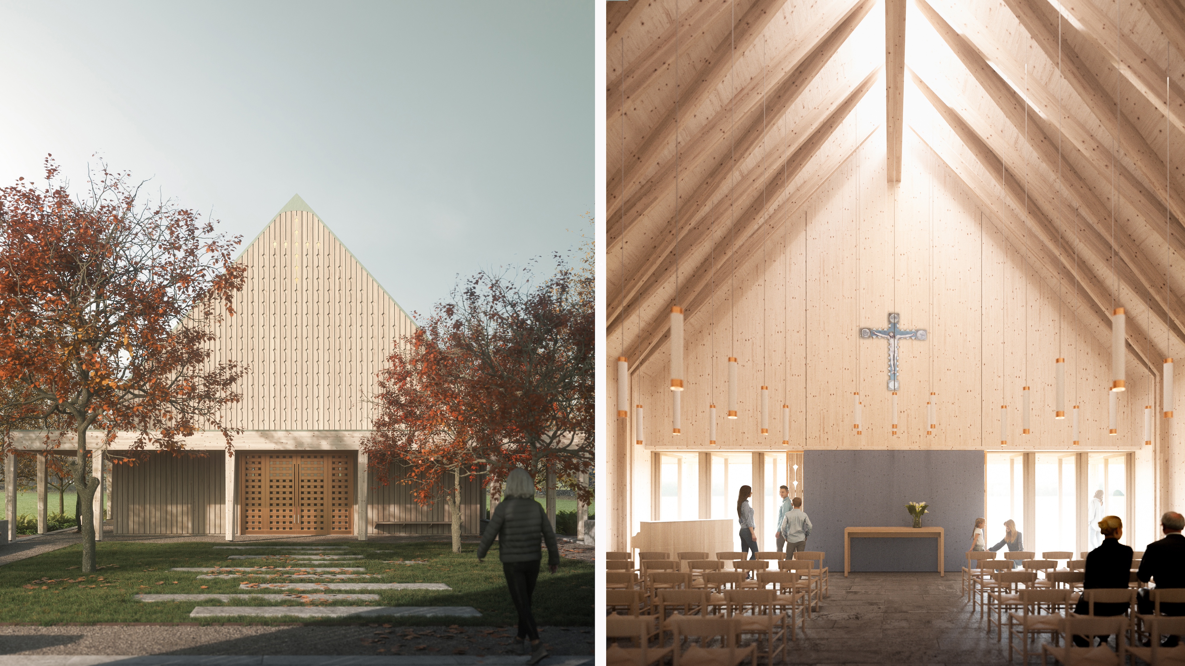 Det nya träkapellet med sin samlingssal för ett 50-tal personer. Bild: Arkitektbolaget