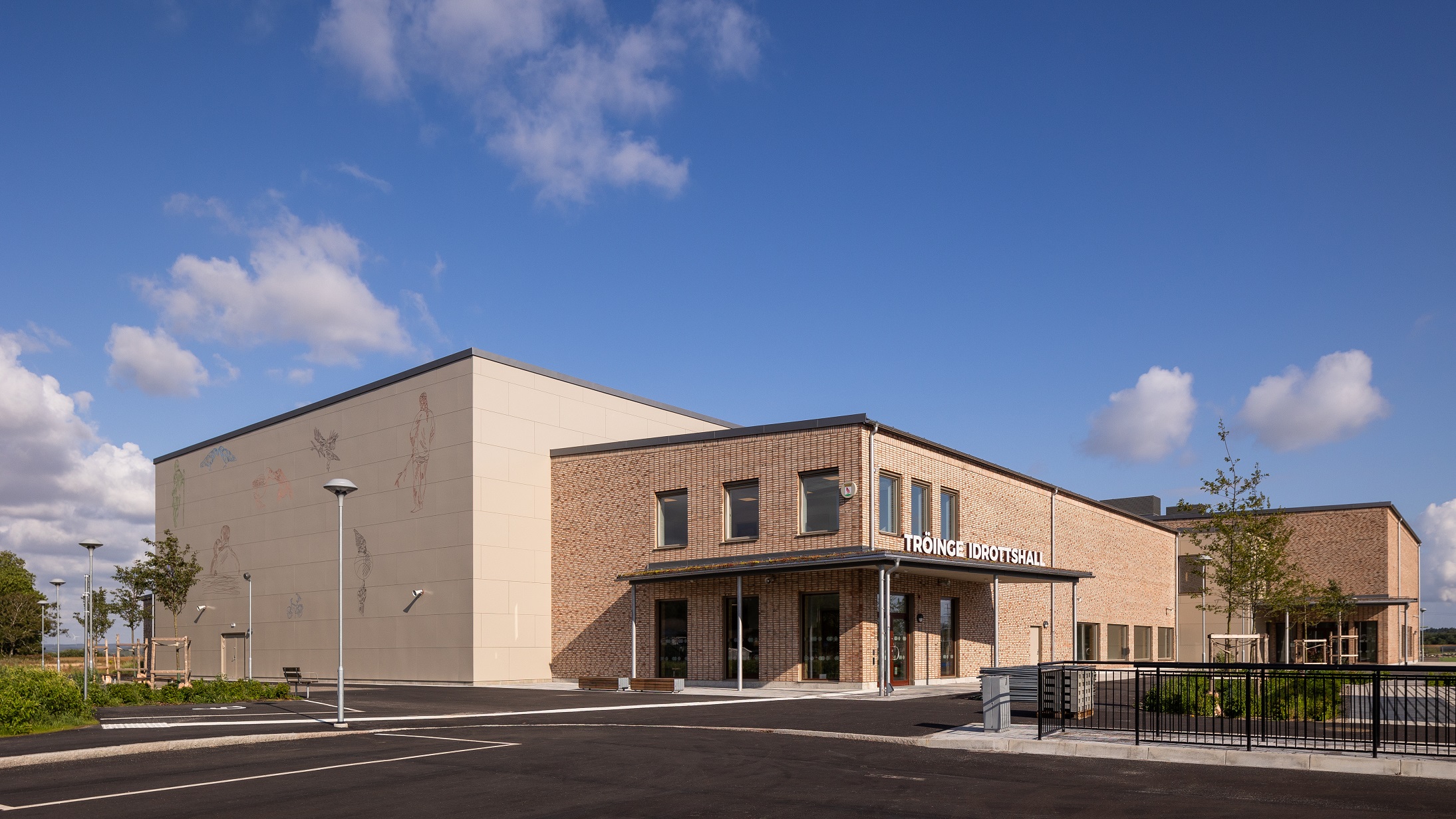 Falkenberg har byggt Tröingeskolan, en F–9-skola dimensionerad för omkring 1 000 elever. På området har även en idrottshall uppförts, uppdelad i tre volymer med tydliga skillnader i material och karaktär. Den största volymen har klätts med fasadskivor från Rockpanel, där urfrästa motiv bidrar till att byggnaden passar in i skolans kreativa miljö.