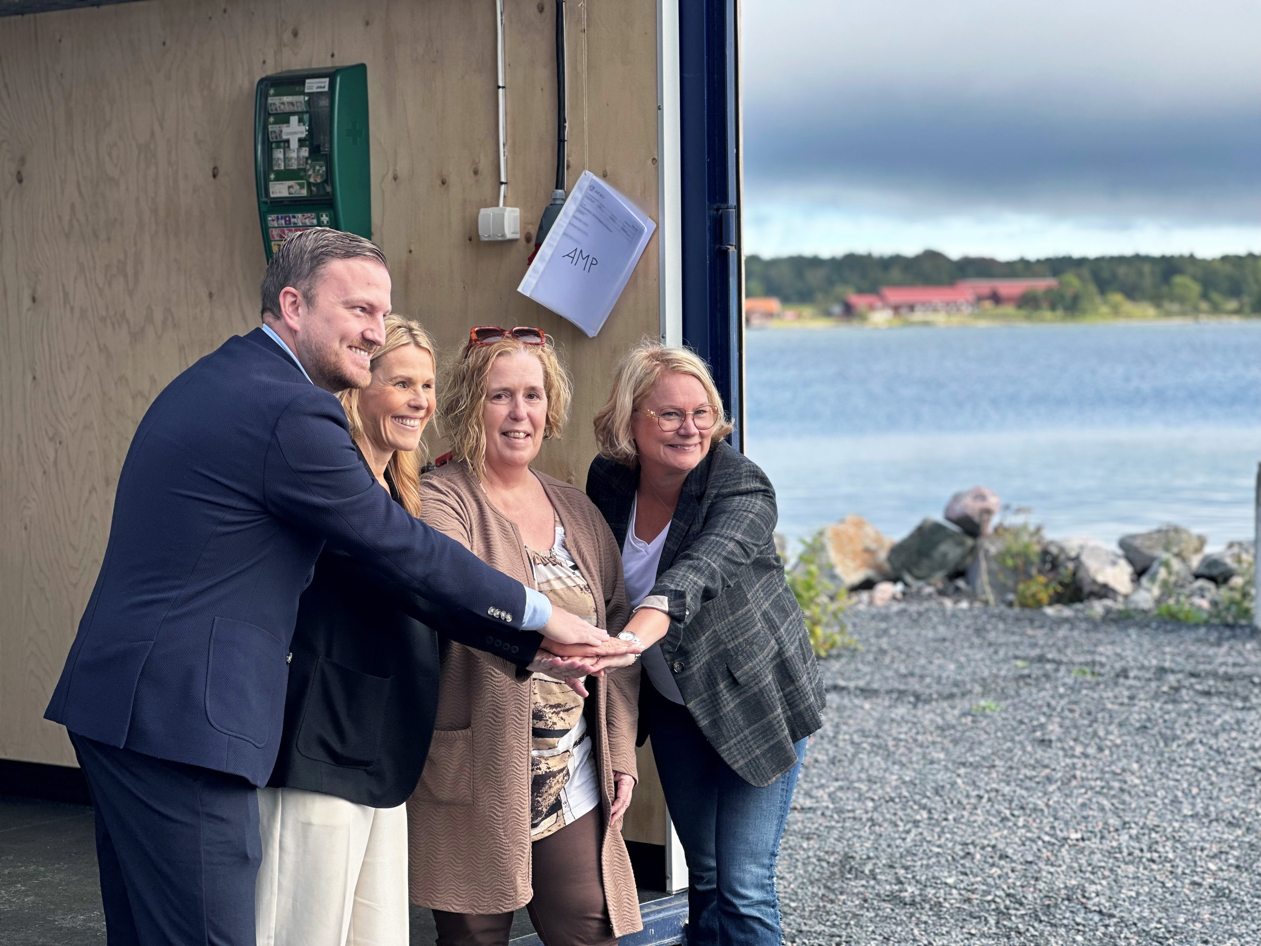 Solen sken över Öregrundsgrepen när kommunstyrelsens ordförande Fabian Sjöberg och Gästrike Vattens vd Lena Blad markerade starten för ett test med avsaltning av havsvatten. Tillsammans med projektets leverantörer inledde de satsningen med ett gemensamt handslag.