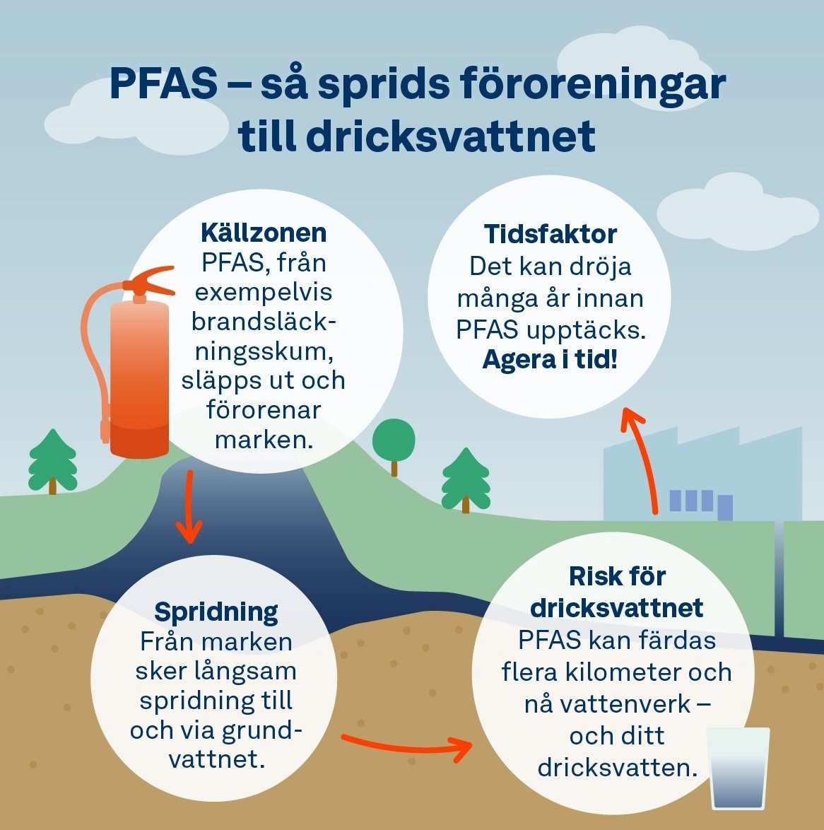 Bilden visar hur PFAS sprids till grundvattnet. Illustration: Make Your Mark.
