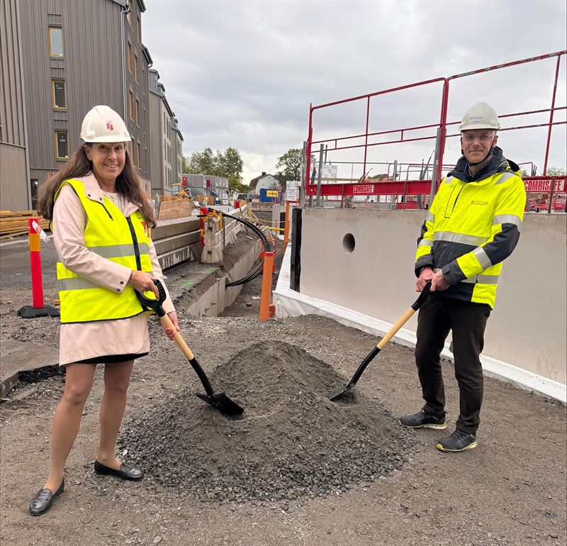 Besqabs VD Magnus Andersson tog första spadtaget för kvarteret Berghällen tillsammans med Tina Runheim, kommunstyrelsens ordförande i Vaxholms stad.