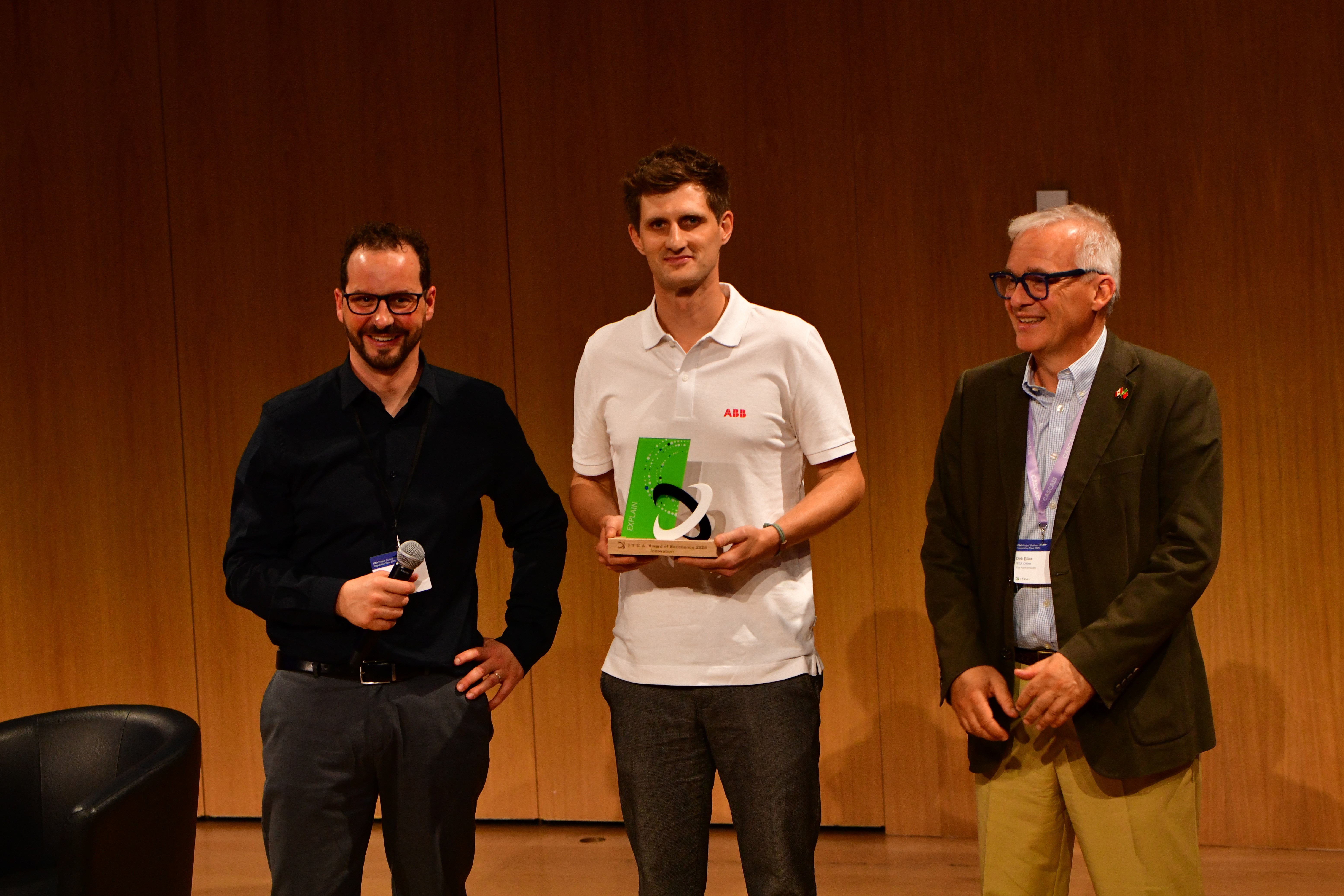 Bild från prisutdelningen. Det internationella forskningsprojektet ExplAIn, där Södra har deltagit under tre års tid, har tilldelats det prestigefyllda ITEA Award of Excellence 2025 i kategorin Innovation.  Foto: ITEA