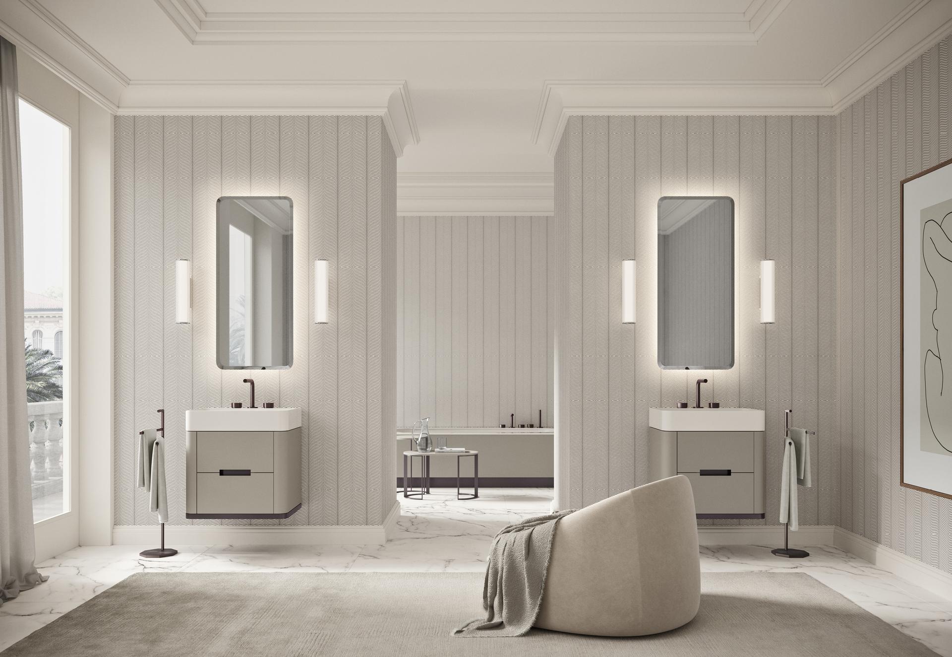 Kollektionen, som kännetecknas av sin återhållsamma elegans, omfattar handfat, förvaringsenheter, badkar och tillbehör – tillsammans en helhet med ett enhetligt formspråk.