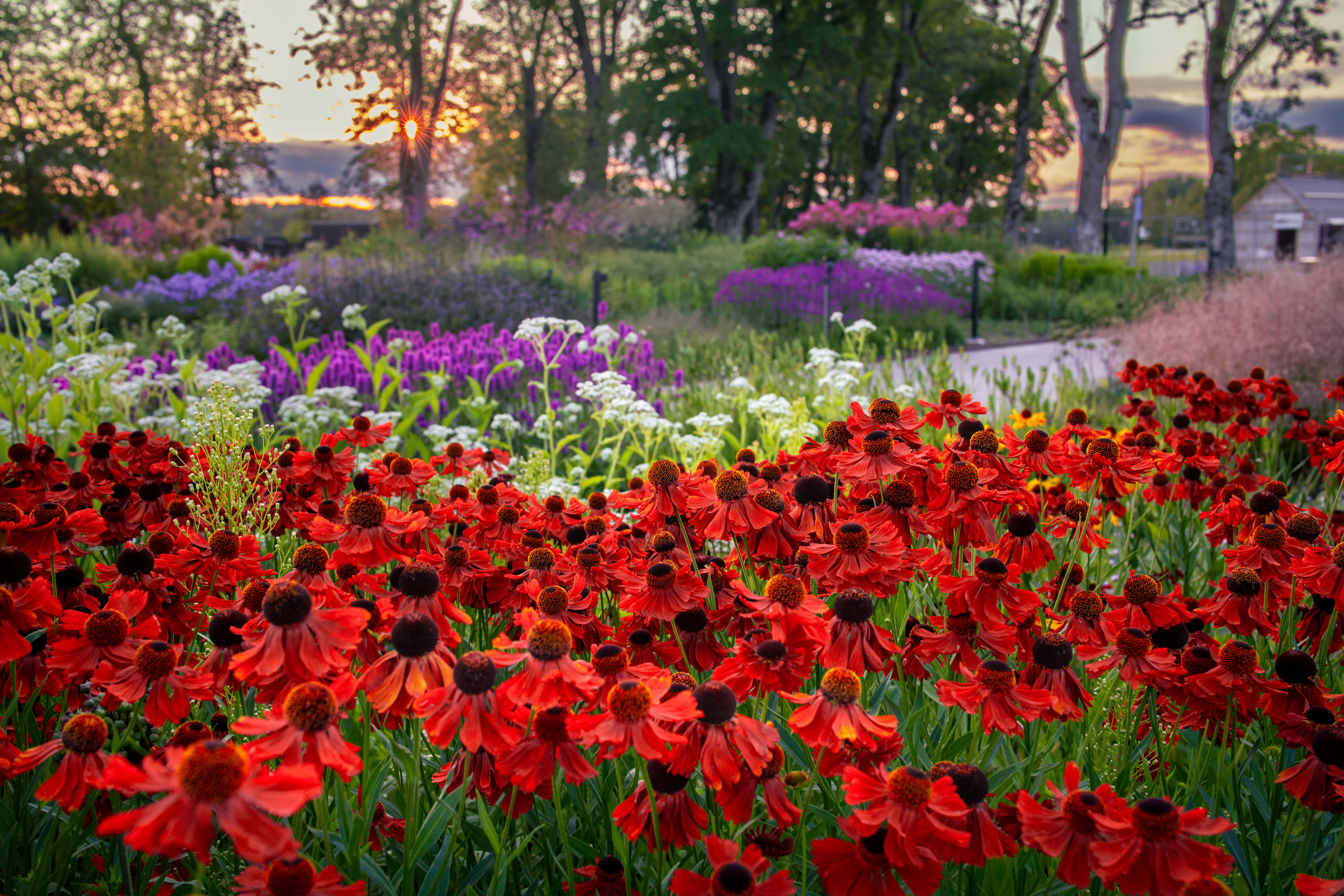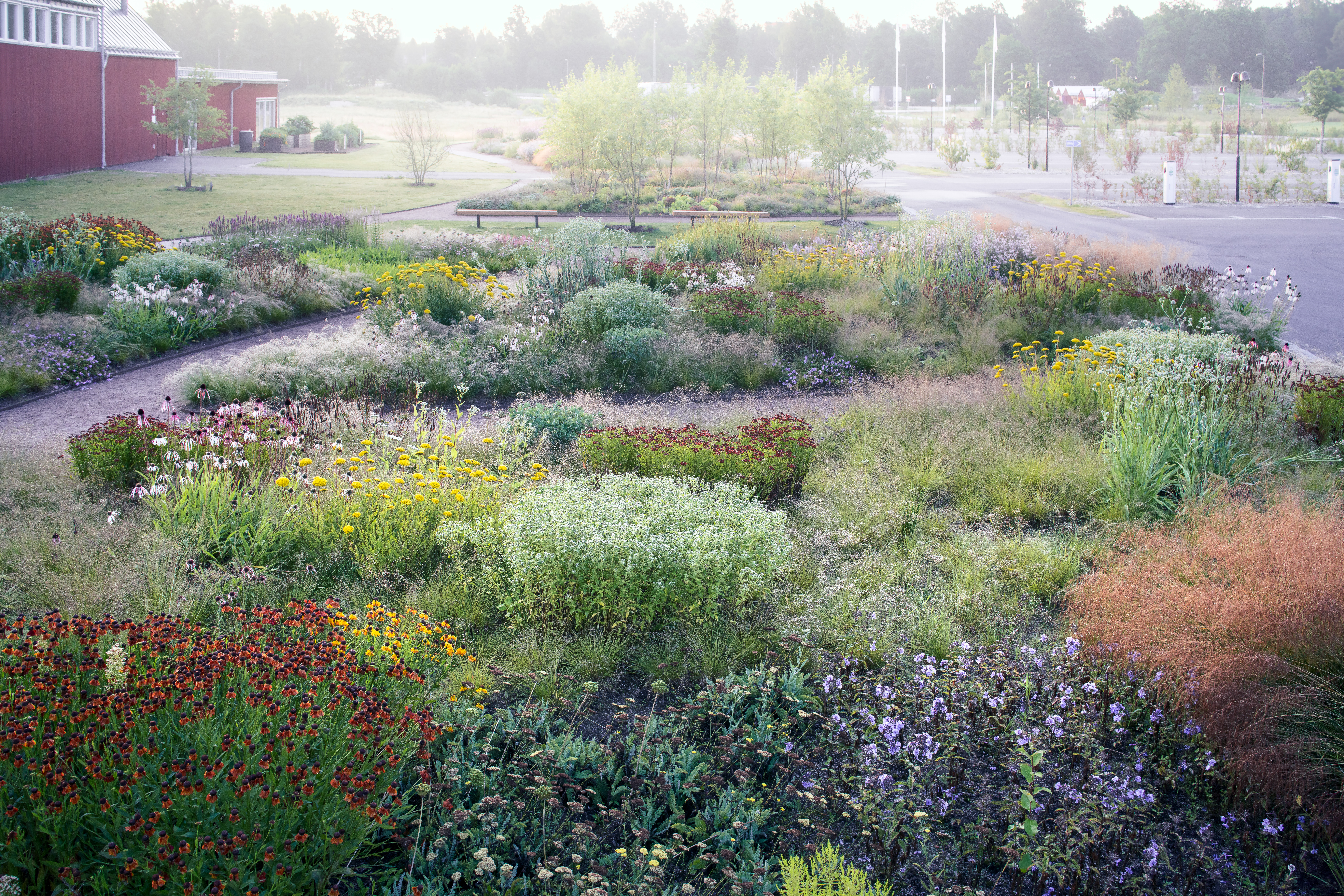 Piet Oudolf har skapat trädgårdar på flera platser i världen, bland annat The High Line i New York, Vitra i Weil am Rhein och restaurang Noma i Köpenhamn. År 2023 anlades 26 000 perenner, 47 000 lökar samt 7 000 träd, buskar och häckar. Ett slutet bevattningssystem återanvänder regn- och smältvatten.