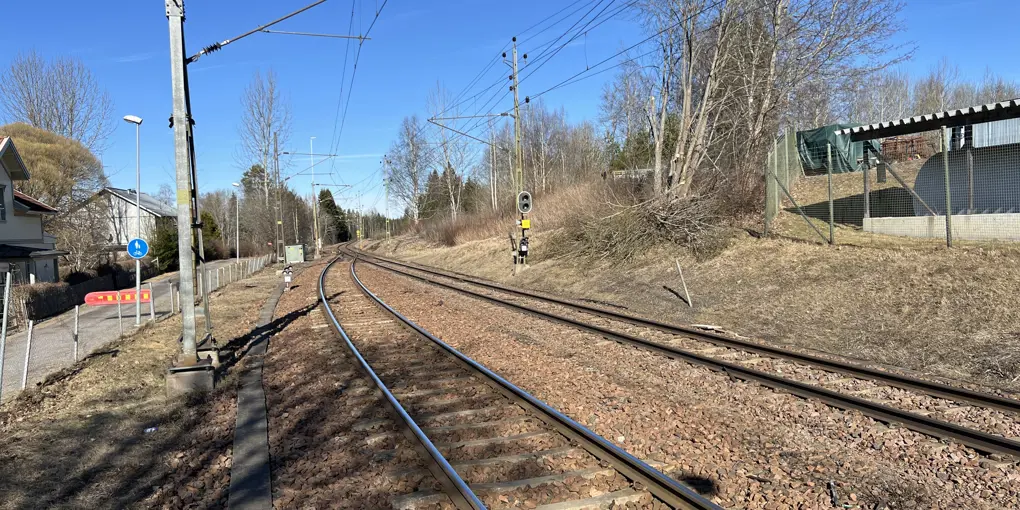 I Högboda utförs arbetet kring växeln i den västra delen av stationsområdet. Även där finns begränsat utrymme, vilket gör att materialet hanteras öster om Bodavägen.