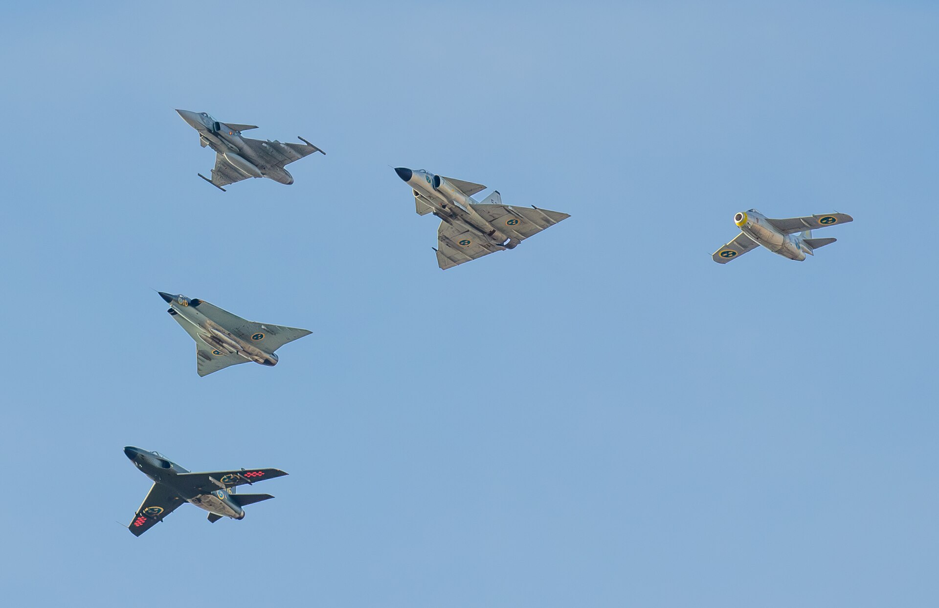 Jas Gripen med sina föregångar. Foto: Frankie Fouganthin/Wikimedia Commons