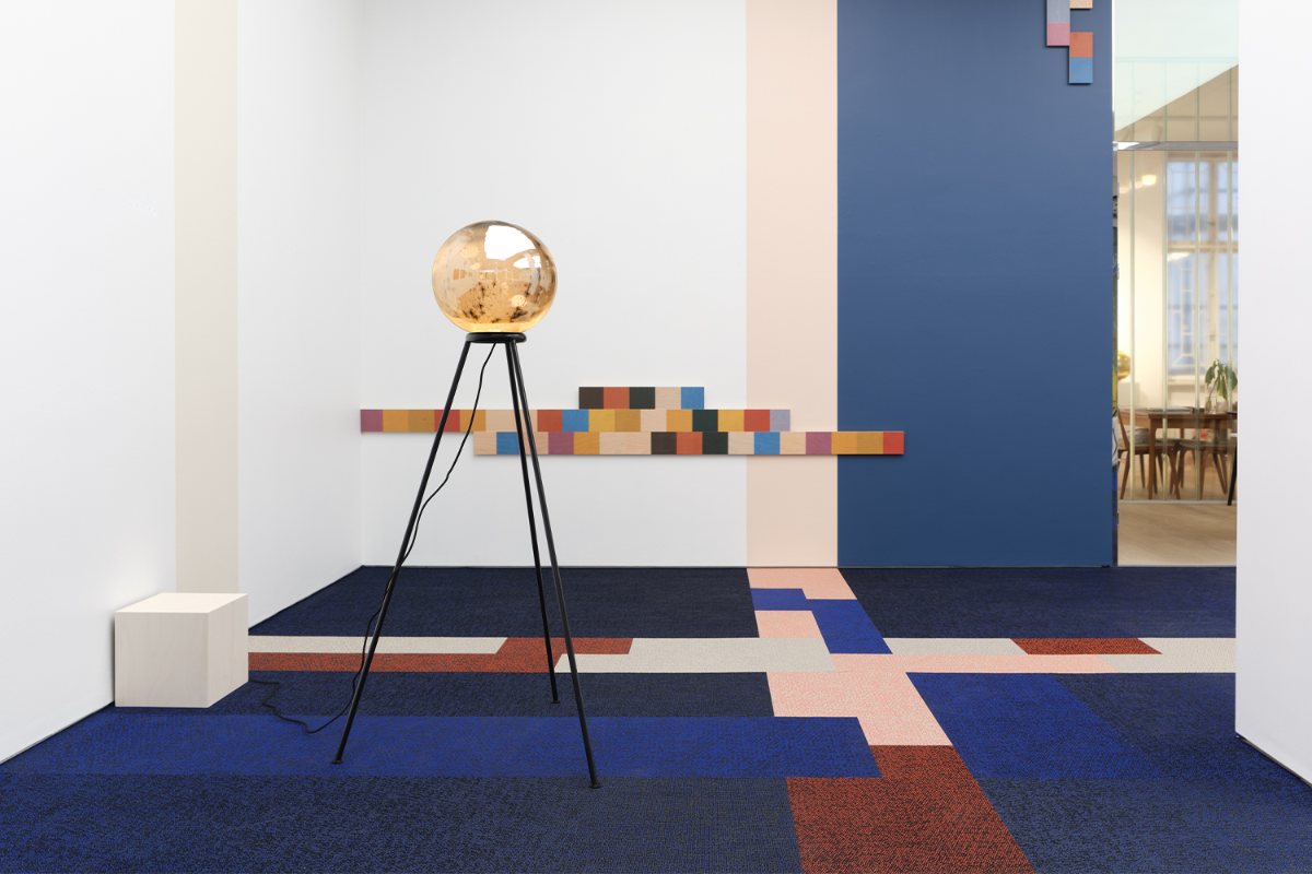 Installationen innehåller även ett golvarbete som skapats tillsammans med Bolon. Vilken betydelse har material och yta för hur besökaren upplever rummet?