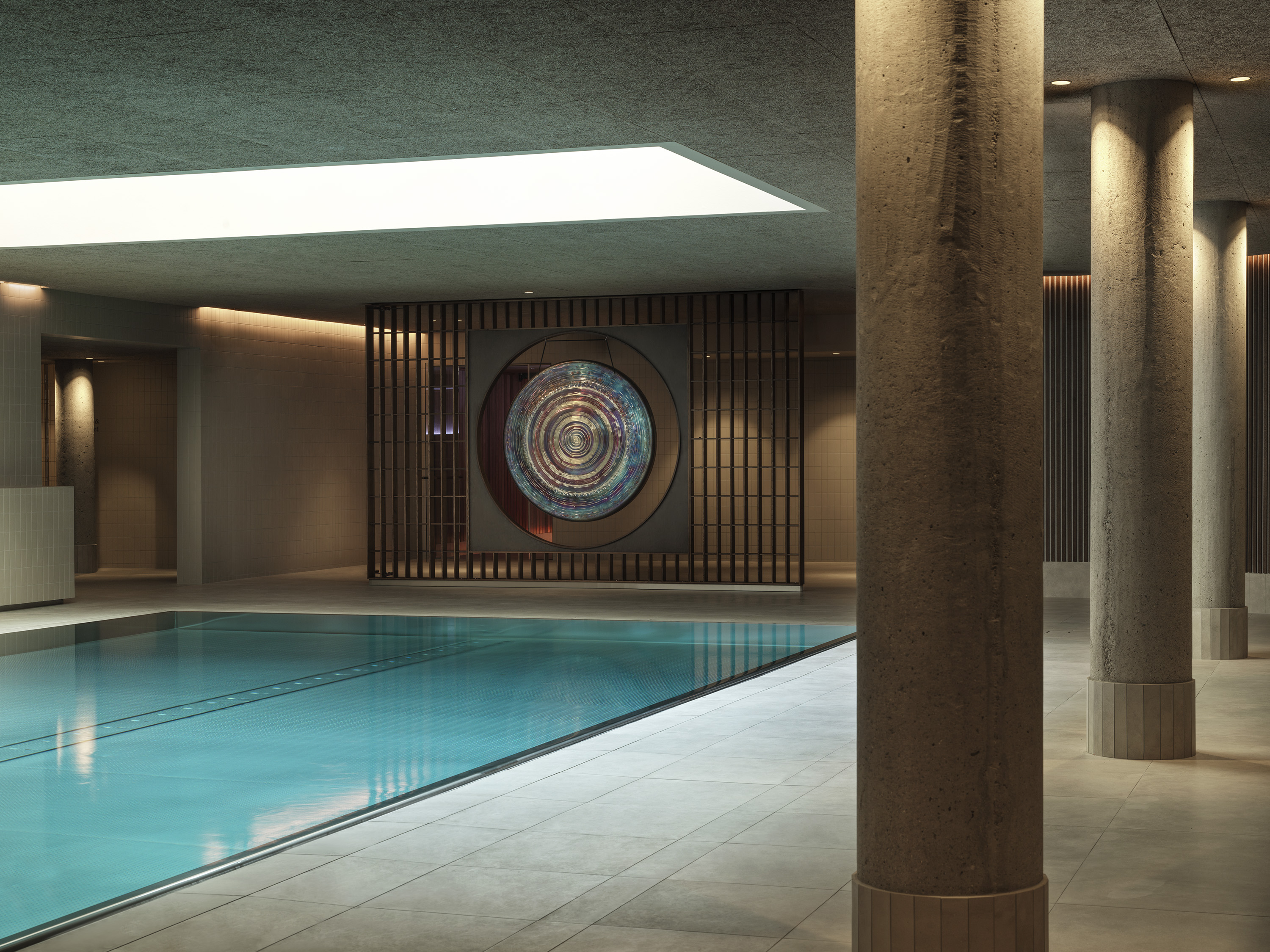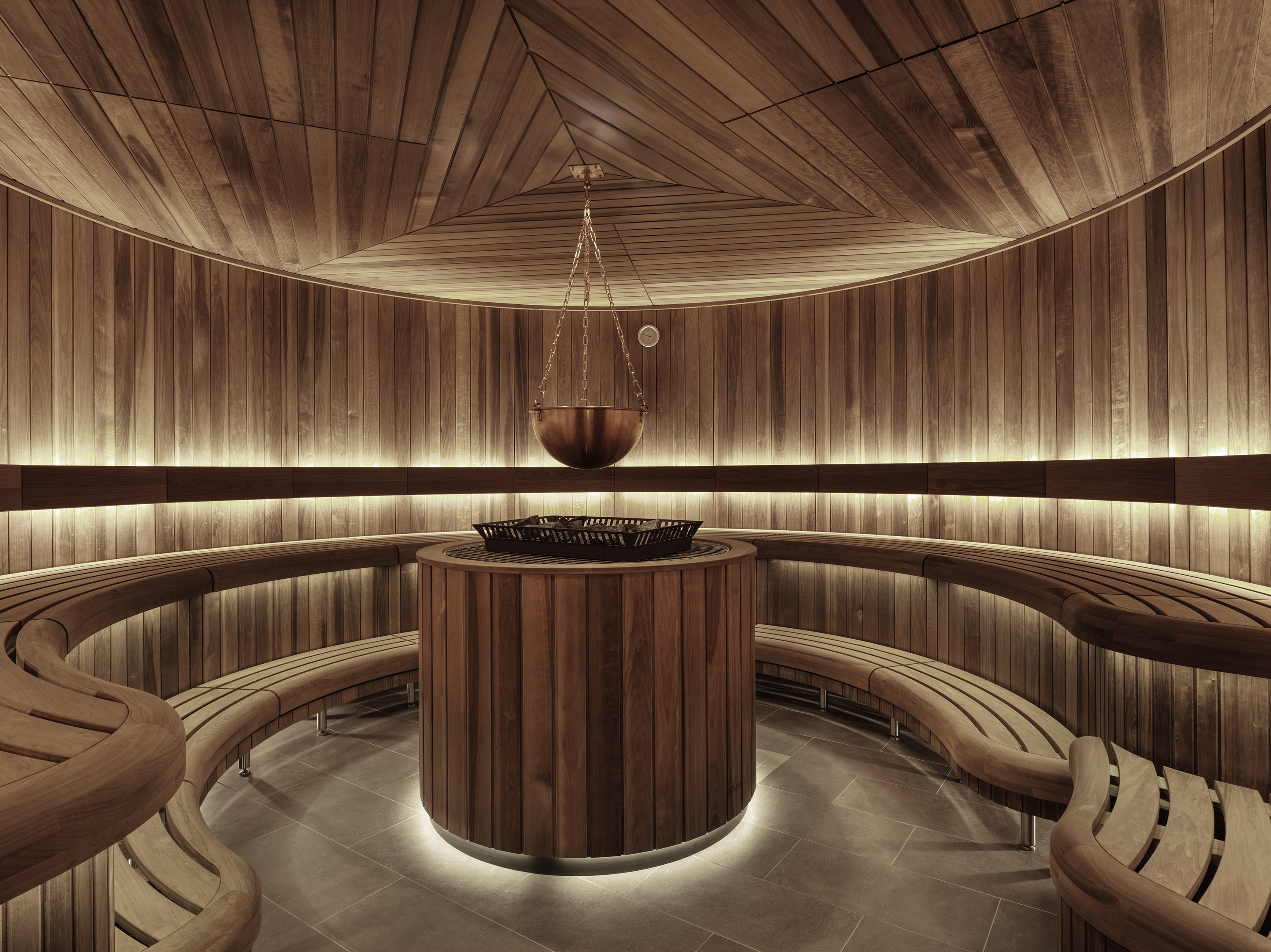 Wellness/spa: 2 500 m² med två unika upplevelser – Social Wellness med eventbastu, pool och bar; Thermal Wellness, en sensorisk resa mellan värme, kyla, tystnad och ljud.