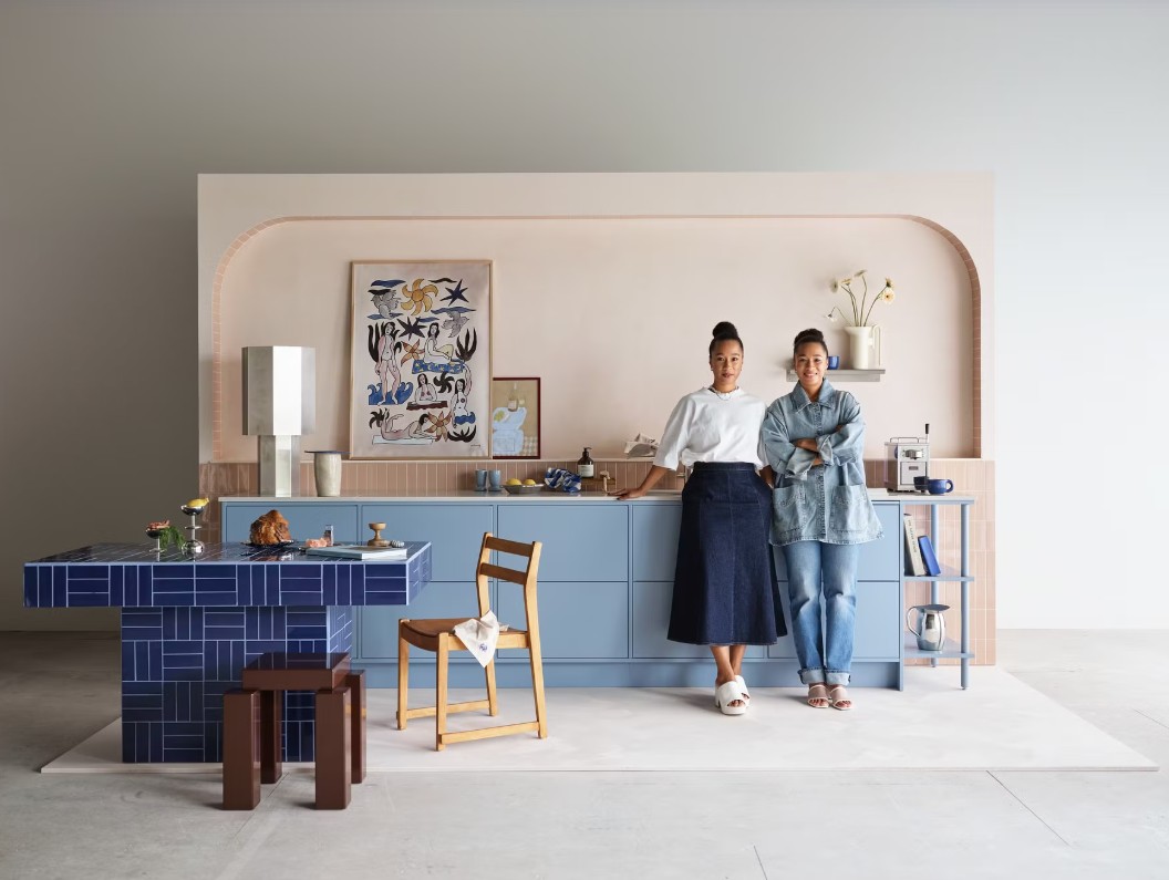 Studio In, som består av Atta Anäng Ring och Maja Furenberg Ring, skapade en tolkning av Vedums himmelsblå kök och badrum med ett modernt och lekfullt uttryck. Designduon beskriver sin utgångspunkt så här: