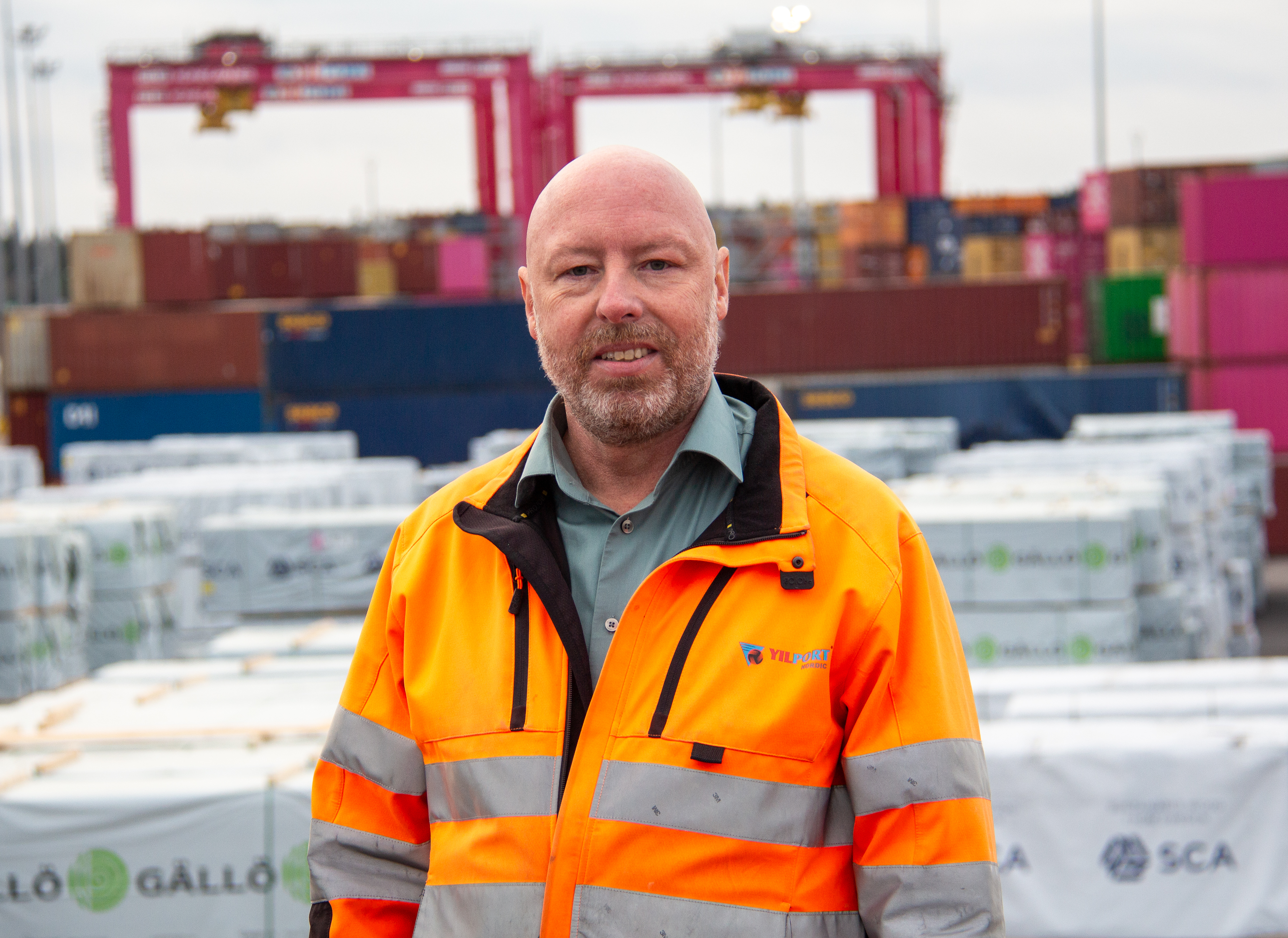 – Vi har gett nytt liv åt tidigare oetablerade ytor. Med en ny, dedikerad plats för virkesstuffningen kan vi både korta körvägarna och frigöra omkring 50 000 kvadratmeter värdefull terminalyta för annan verksamhet, säger Jörgen Flank, terminaldirektör för bulkterminalen på Yilport.