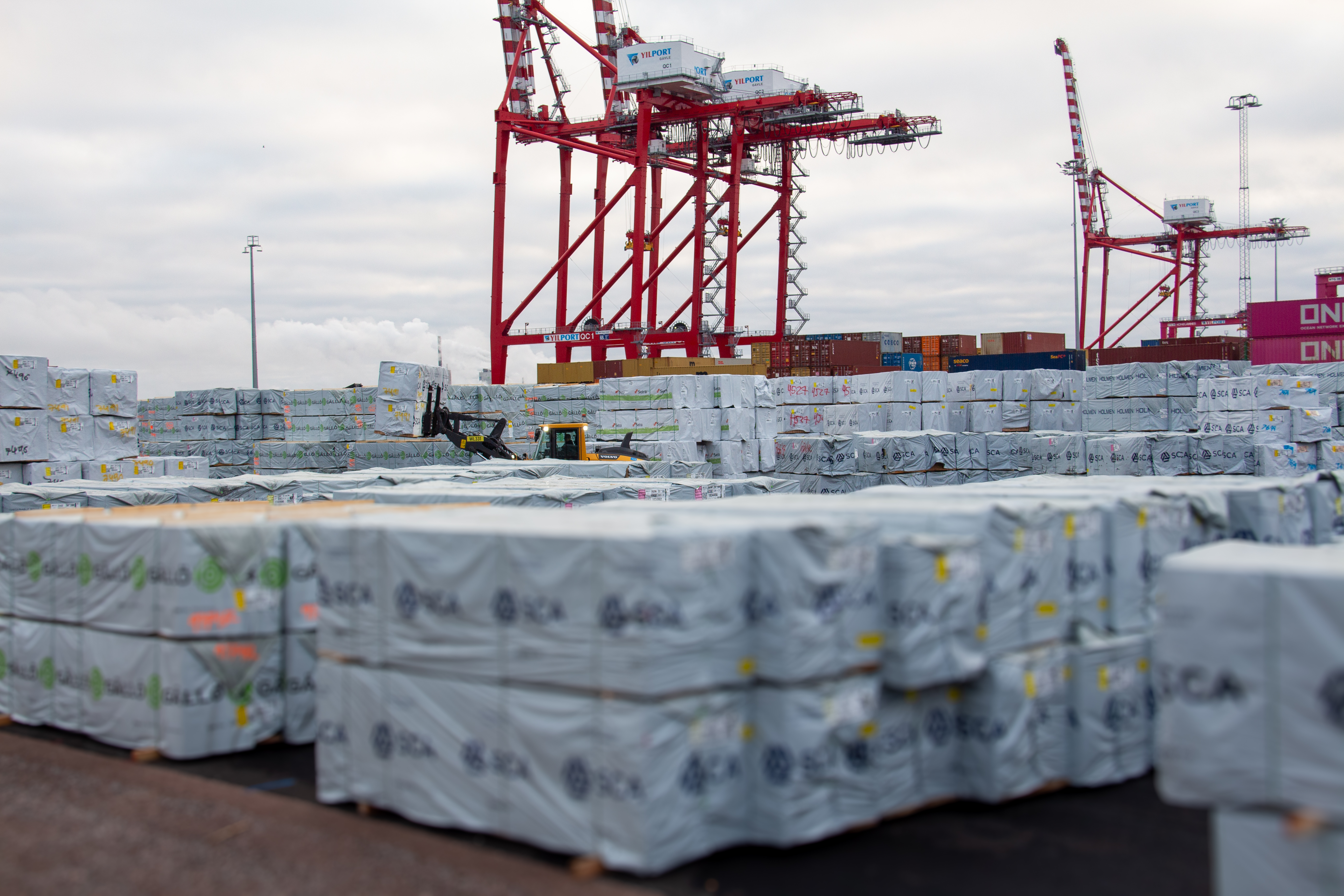 När virkesstuffningen nu samlas i direkt anslutning till containerterminalen minskar avståndet per transport med drygt tre kilometer. På årsbasis innebär det cirka 40 000 färre körkilometer inom hamnområdet.