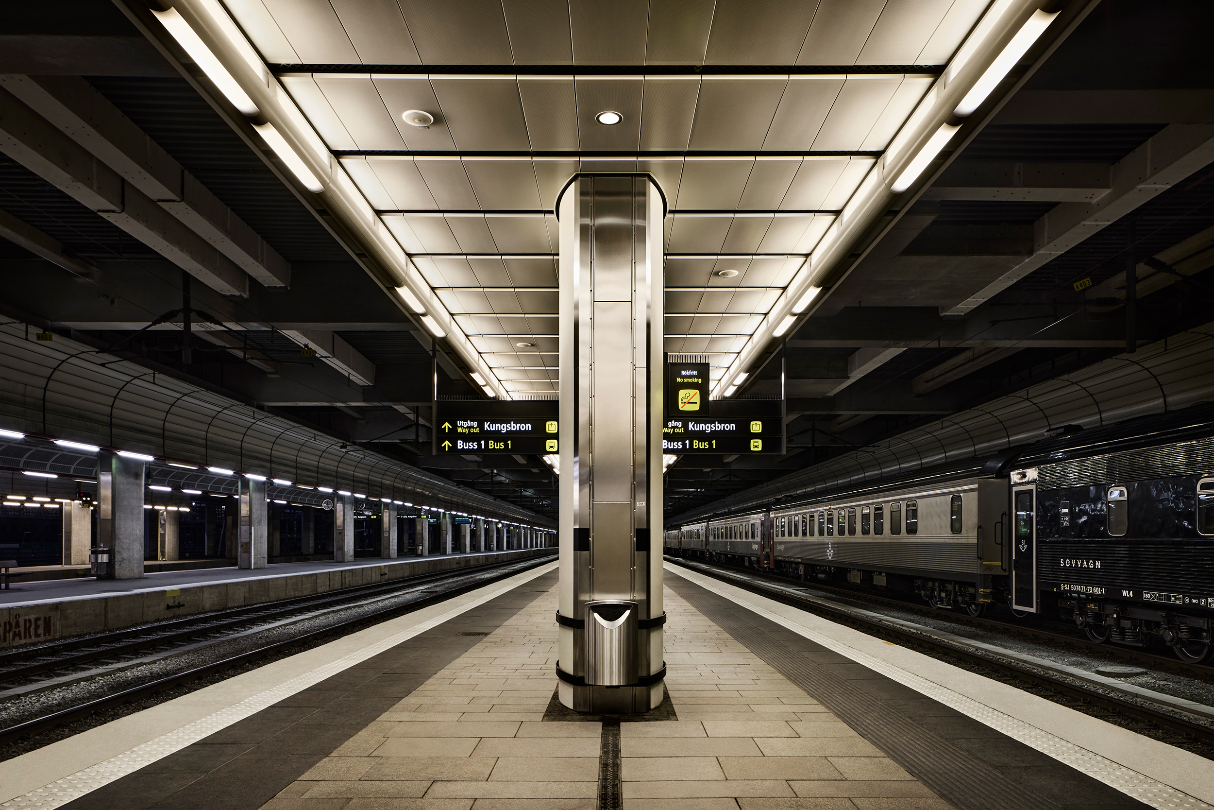 Projektet utformades för att stärka plattformarnas funktion och arkitektur. Vertikalt och indirekt ljus lyfter konstruktioner som pelare, tak och golv och gör rummet lättare att läsa. Riktat ljus i mittzonen markerar sittplatserna och skapar en mer avgränsad del av plattformen. Integrerade lösningar med mjuka ljusövergångar minskar kontraster mellan skyddade ytor och det omgivande utomhusljuset. Fullskaliga tester och samarbete med flera discipliner låg till grund för val av färger och material.