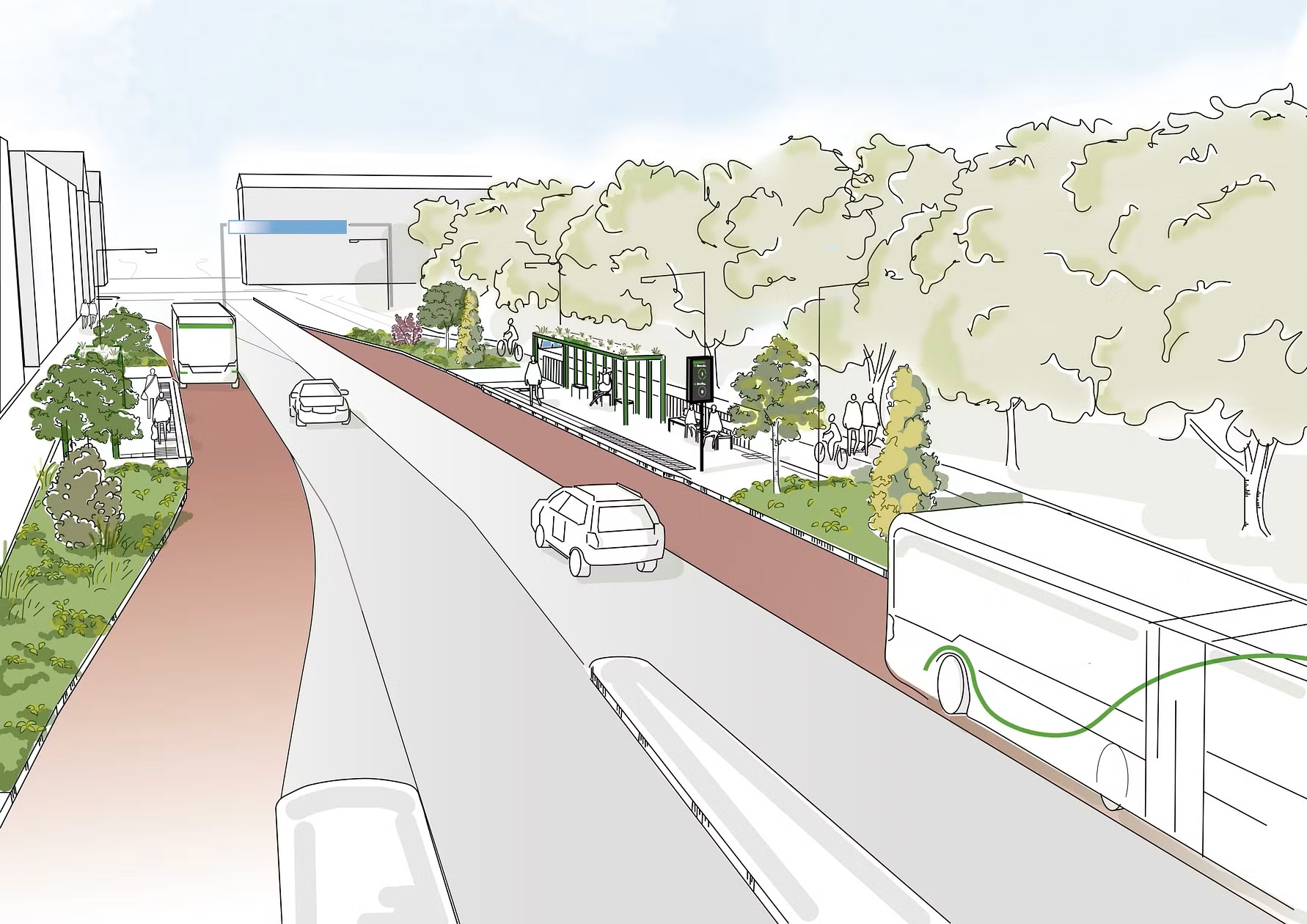 Nya moderna, tillgänglighetsanpassade hållplatser finns på plats, utrustade med sittbänkar, belysning och gröna väderskydd med torräng på taket. Digitala informationsskyltar visar hur många minuter det är kvar tills bussen anländer.
