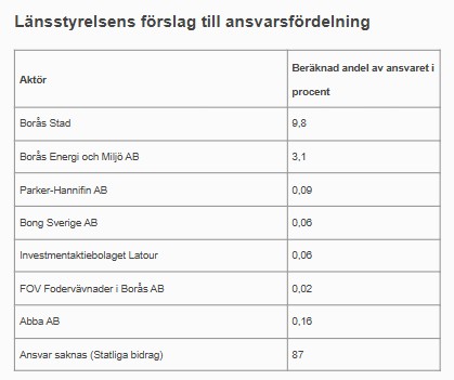 Länsstyrelsen har beräknat ansvaret för de verksamhetsutövare som finns kvar. Beräkningen är baserad på utsläppen av elva olika ämnen direkt till Viskan, där förekomsten av alla elva ämnena motiverar åtgärder. Enligt Länsstyrelsens bedömning är verksamhetsutövarna endast ansvariga för utsläpp som skett från och med 1969.
