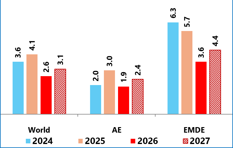 Enligt IMF väntas världshandeln växa betydligt långsammare under 2026 än under 2025. Utvecklingen kopplas till att många importörer tidigarelagt inköp under 2025 för att förekomma förändringar i handelspolitiken. Prognosen för 2026 innebär därmed svagare volymtillväxt, vilket kan göra det svårare att absorbera ny fartygskapacitet och öka trycket på fraktraterna.