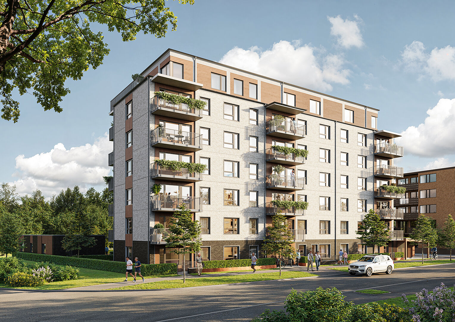 Bonum Brf Lyckø exteriör. Pressbild: Riksbyggen