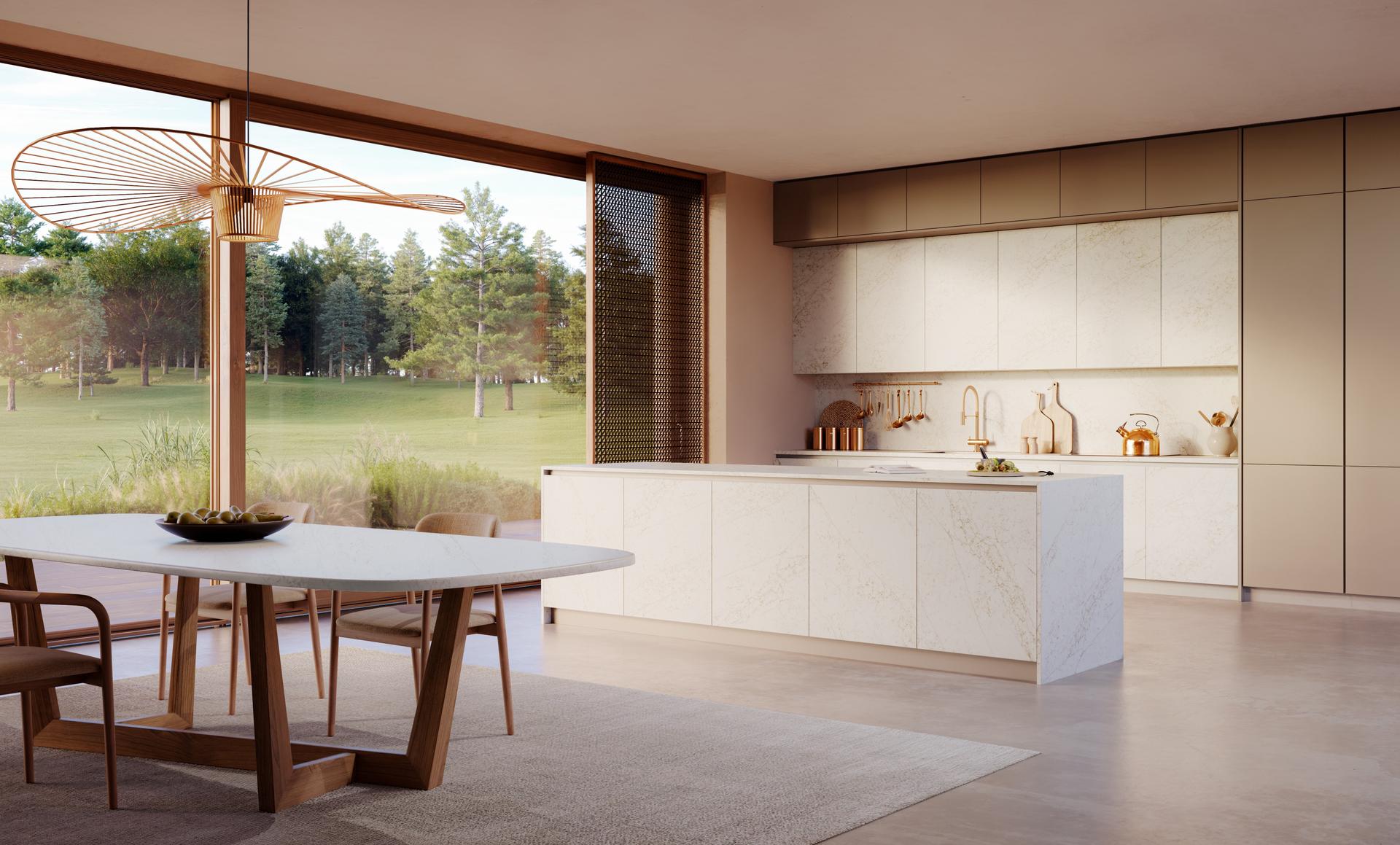 Taj och Sequoia läggs till i Forest-kollektionen, som består av låg-silikaytor med genomgående mönster. Den nya Taj-ytan är inspirerad av stenens naturliga karaktär, med varma toner och fina mineralådringar, och är anpassad för köksbänkar och badrumsmiljöer. Den mjuka matta ytan sprider ljus och fungerar tillsammans med trä, metall och andra material, och kombinerar taktil känsla med funktion.