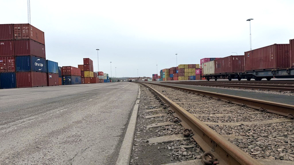 Containrar som lastas på tåg vid inlandsterminalen i Helsingborg når Nordens största containerhamn inom cirka 5 timmar. Foto: APM Terminals