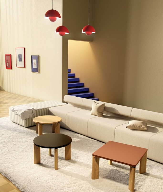 Fora Form visade bordssystemet BAST, designat för flexibla arbets- och mötesmiljöer. – ”Vi ville skapa ett bord som både är starkt och anpassbart – ett system med tydlig närvaro som kan leva länge och utvecklas med rummet,” säger Hunting & Narud.