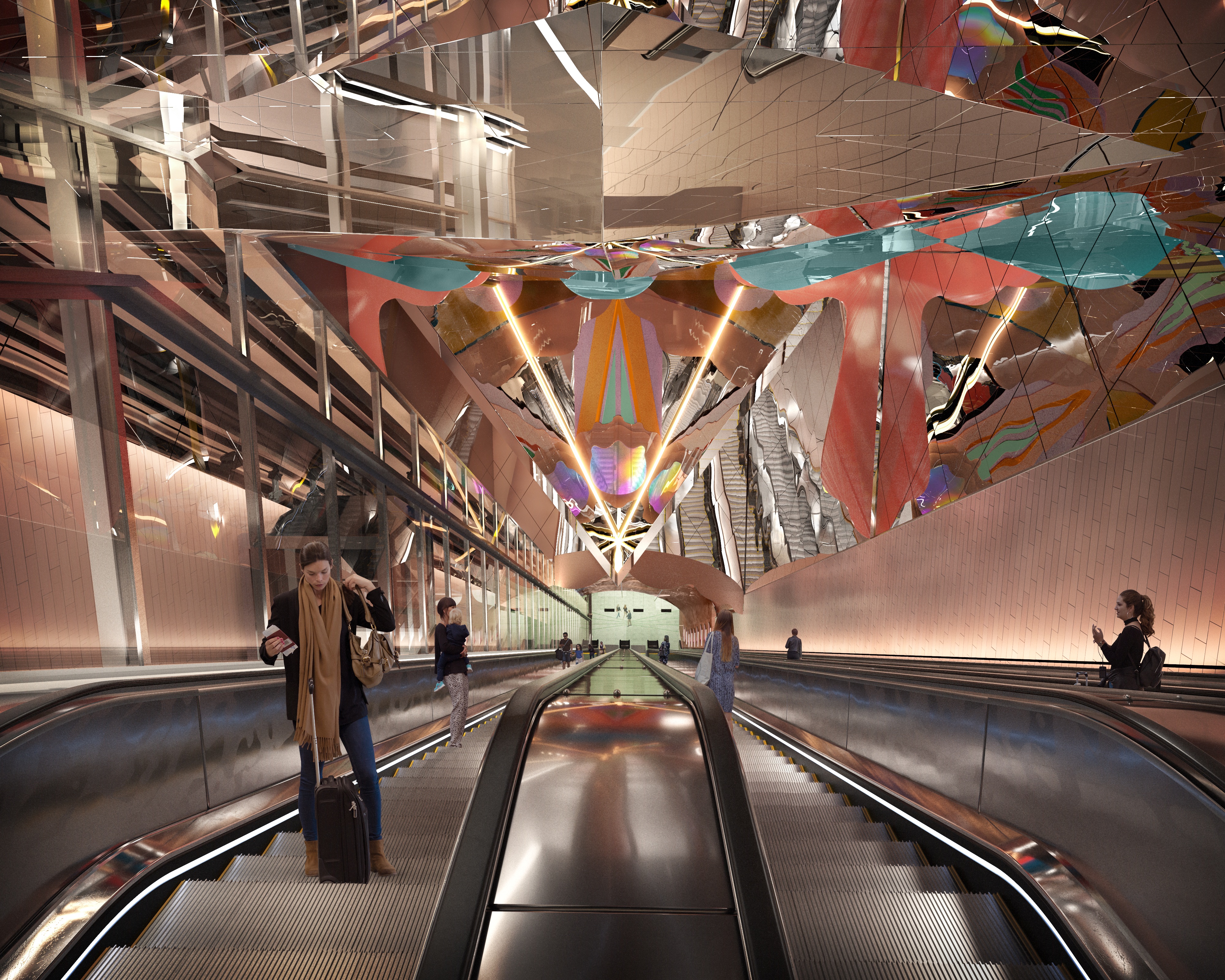 Station Sofia byggs cirka 100 meter under mark och blir en av de djupaste tunnelbanestationerna i världen. Den får hissar i stället för rulltrappor, en lösning som även används på nya stationer på Gul linje till Älvsjö.