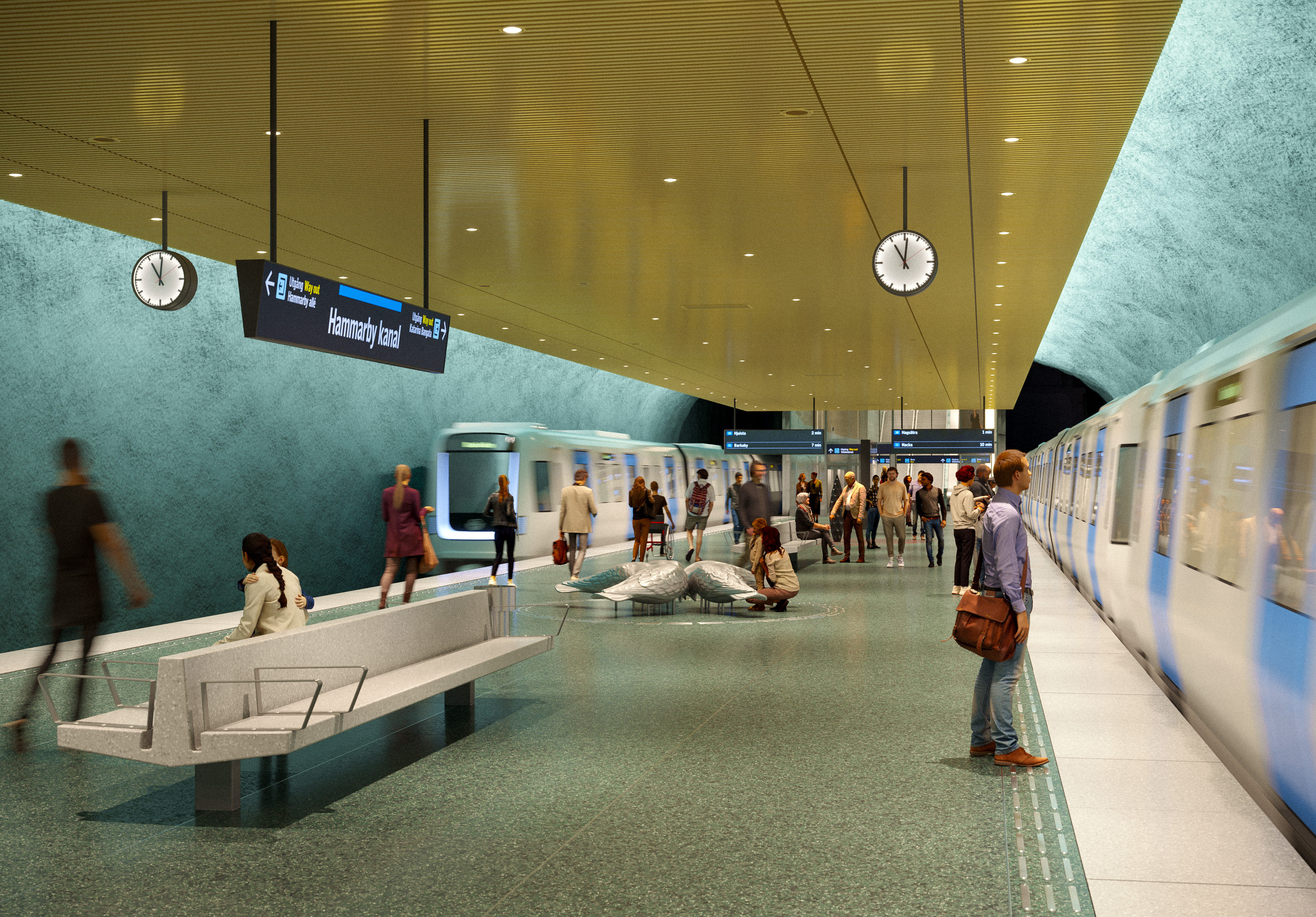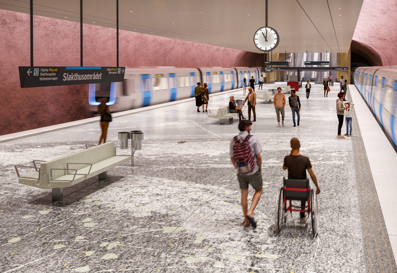 Flera av de nya stationerna får lösningar som anpassas efter funktion och läge. Station Slakthusområdet är en station som utmärker sig. Den får en extra bred plattform för att hantera stora resenärsflöden vid evenemang.
