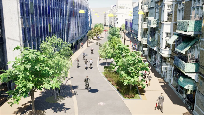 – Södra Förstadsgatan ska omvandlas till en modern grönskande handelsgata för cyklister och fotgängare – med inbjudande vistelsemiljöer och hög upplevd trygghet, säger Pella Ström, Fastighets- och gatukontoret, Malmö stad.