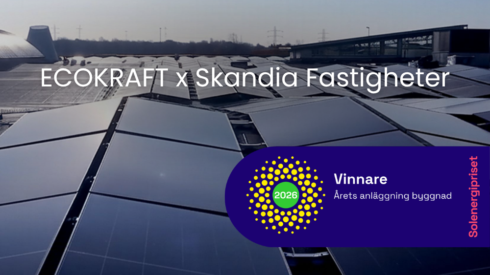 ECOKRAFT har tilldelats Solenergipriset 2026 av Svensk Solenergi för solcellsinstallationen på köpcentrumet Nova i Lund. Priset uppmärksammar projektets arbetssätt och dess bidrag till utvecklingen av storskalig solenergi i Sverige.