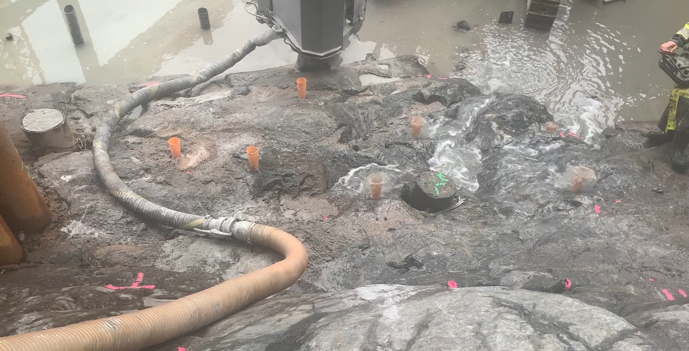 Tätt hål med synligt injekteringsmaterial (Stabtech Rock).